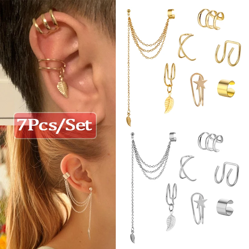 Correcto artículo y envío breve. vendedor recomendado para 7 unids/set Vintage borla Color oro puños de oído hoja pendientes de Clip pendientes largos aretes pendientes para las mujeres los escaladores sin Piercing falso cartílago pendiente de la joyería