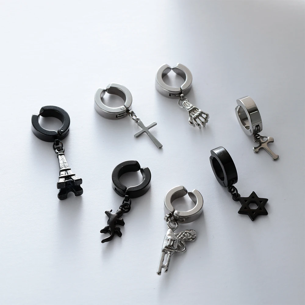 Name: 1 Pc pendientes de acero inoxidable de las mujeres de los hombres de moda, Hiphop estilo Rock colgante de Cruz aro Clip en pendientes no-Piercing oreja manguito Clip