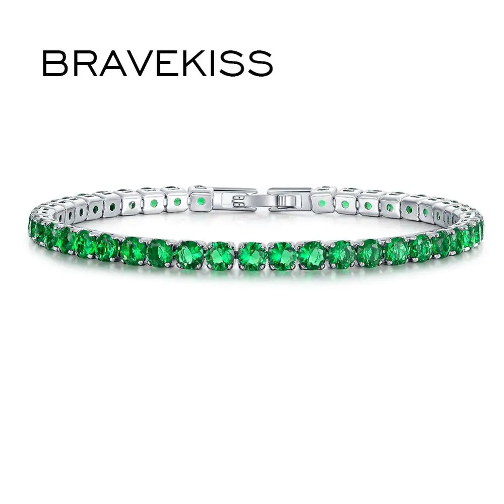 Name: BRAVEKISS-Pulseras de tenis de piedras de circonia cúbica verde para mujer y hombre, joyería de moda, accesorios de fiesta de boda, 0.25ct, burbu0097b